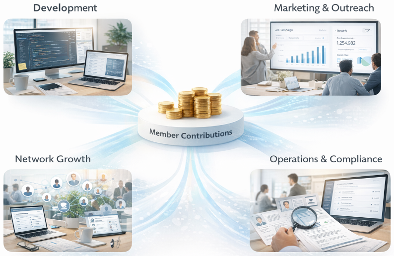 Every contribution supports the same outcome: building a widely adopted identity network where privacy, compliance, and recurring professional value exist together.