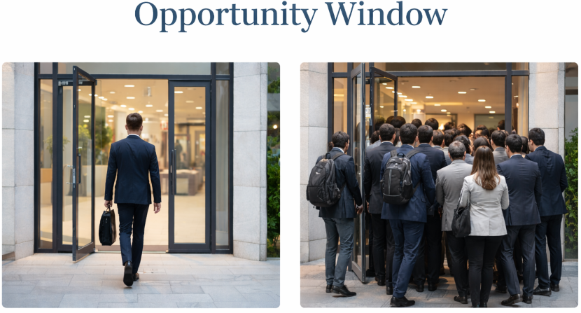 Early participation lets you build a larger client portfolio and secure better economics as the network grows. Later entrants join a more mature system where many early users are already verified.