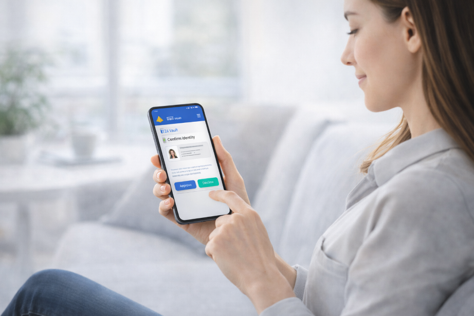 Once your identity is verified, the system creates trusted proof that verification took place. Later, when a participating company needs identity confirmation, the request comes through your app, and you can approve it there.