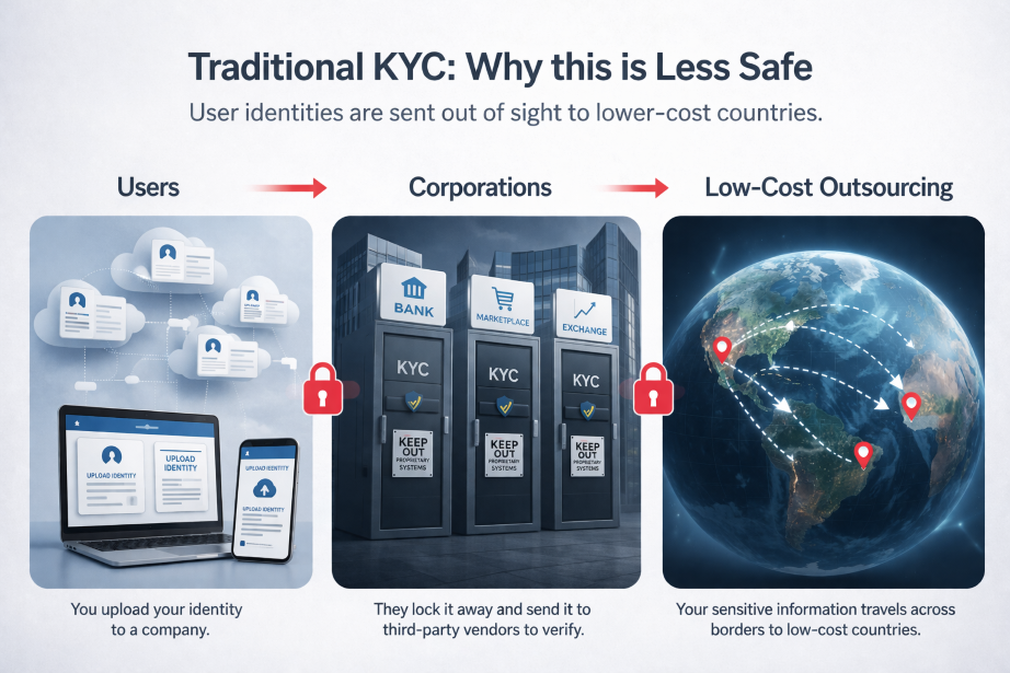 Traditional identity systems create risk by duplicating your data across many organizations and databases. Most people never know how many copies of their documents exist, where they are stored, who can access them, or what happens if one of those systems is breached.